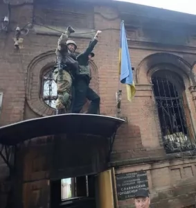 Він також поділився спільною із Романом світлиною. На ній вони встановлюють український прапор на будівлі СБУ в Слов’янську у липні 2014 року.