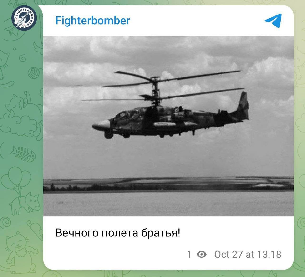 Відомий ворожий Z-блогер опублікував прощальний допис з фото Ка-52, натякаючи на втрату бойового гелікоптера.