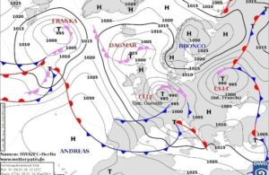 Циклон Ulli (карта внизу) ще найближчої ночі зумовить опади у вигляді снігу, мокрого снігу та дощу. Часом сильні опади!